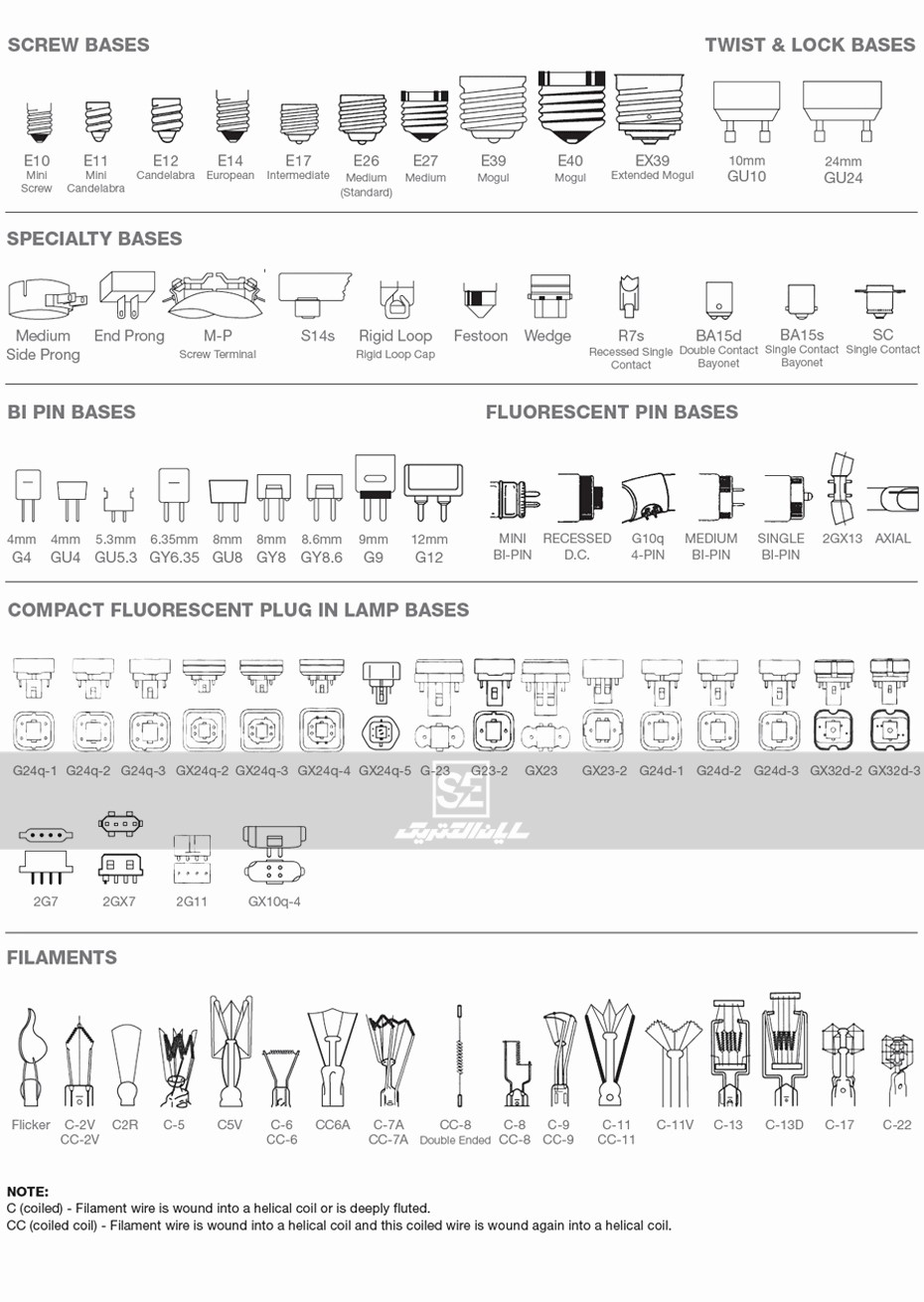 این جدول را برای شناخت، انتخاب و نامگذاری صحیح انواع پایه لامپ همراه داشته باشید.